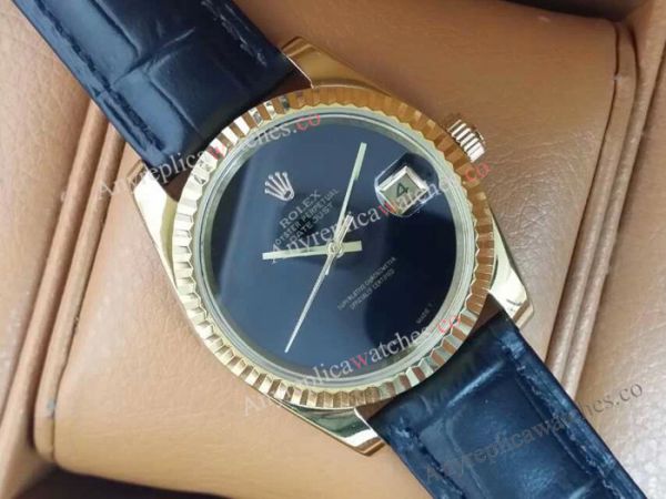 Replica Rolex Datejust Black Leather Strap Fashion Watch