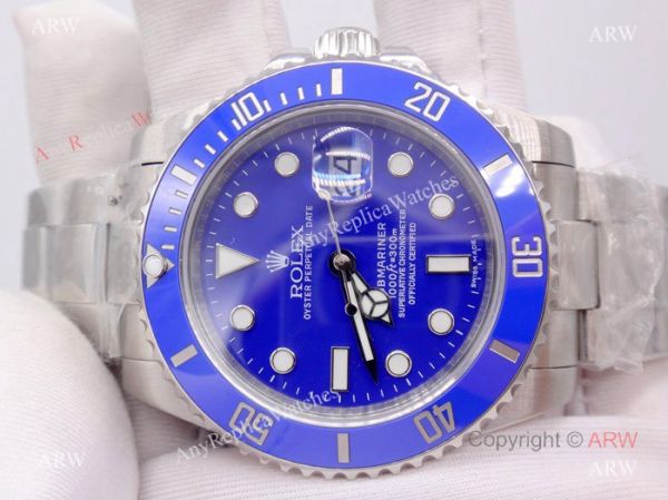 NEW UPGRADED SS Blue Dial Blue Ceramic Bezel Replica Rolex Submariner watch