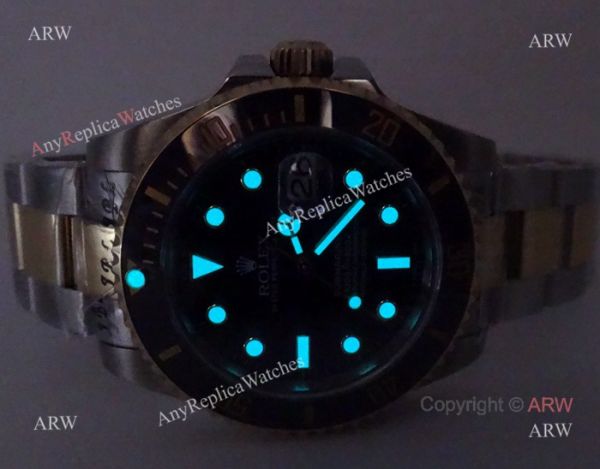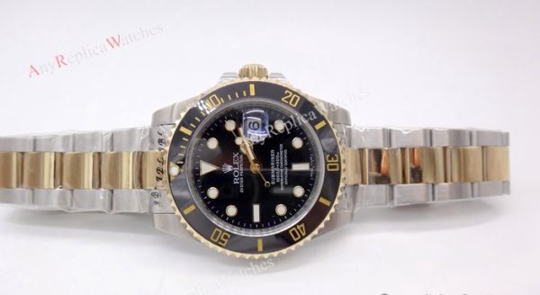 Replica Rolex Submariner Mens watch Two Tone Black Dial Black Ceramic Bezel