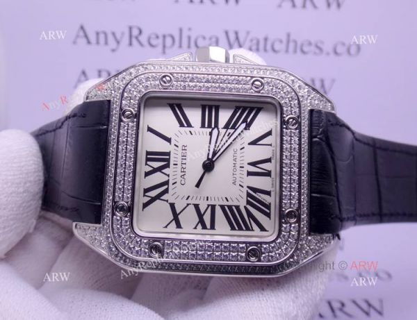 Dial Dimensions: 43mm Cartier Santos 100 Diamond Replica Watch