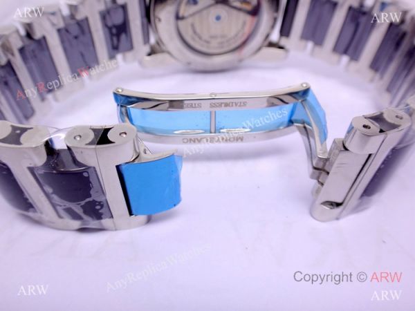 Double-Fold Clasp - with Montblanc engraving on the watch buckle.