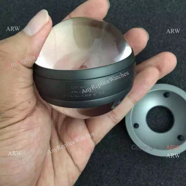 Because of the magnifying properties, the movement can be admired. Especially the few movement details that are exposed and visible, such as the balance wheel and the intermediate wheel. We think that Panerai s table clock look absolutely cool.