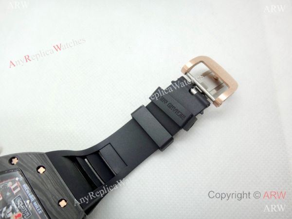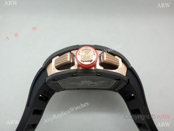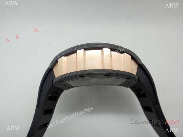 2-Tone Rose Gold & NTPT Carbon Case Black Dial Black Rubber Watch Bracelet
