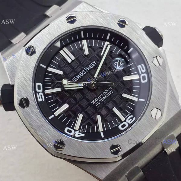 Swiss AAA Replica Audemars Piguet Royal Oak Diver 15710 Black Rubber Strap