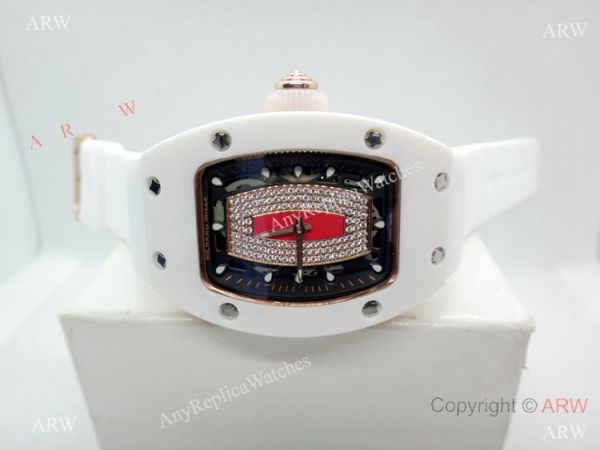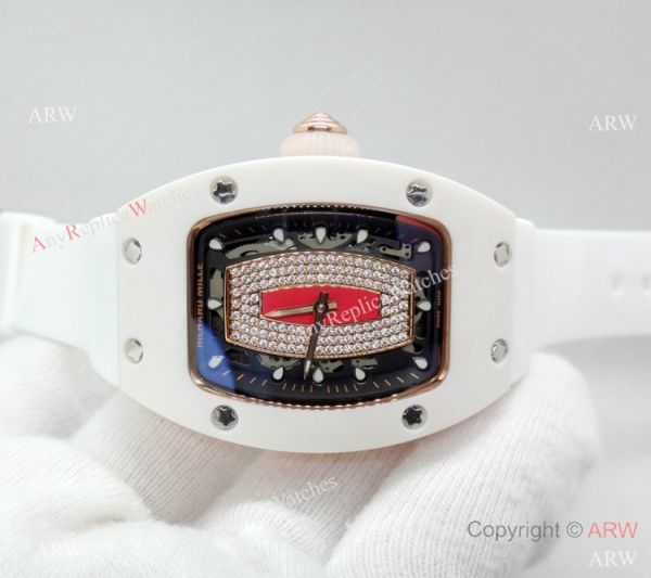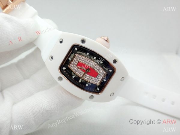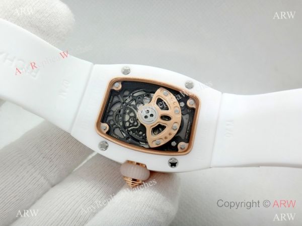 Replica Swiss Richard Mille Watch RM07-1 White Ceramic Case Rubber Band