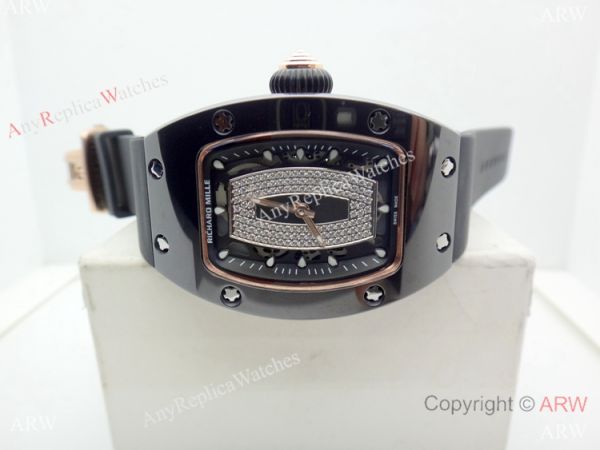 Black Ceramic Case Black&Diamond Dial Black Rubber Watch Bracelet Richard Mille Black Diamonds Watch for women