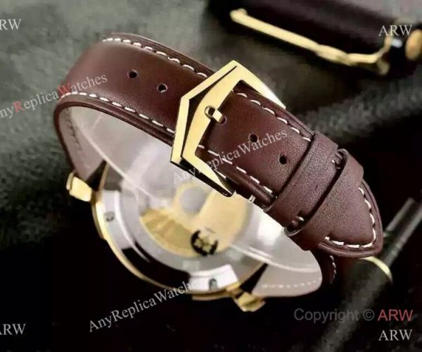 Yellow Gold Case with White Roman dial / Brown Leather strap
