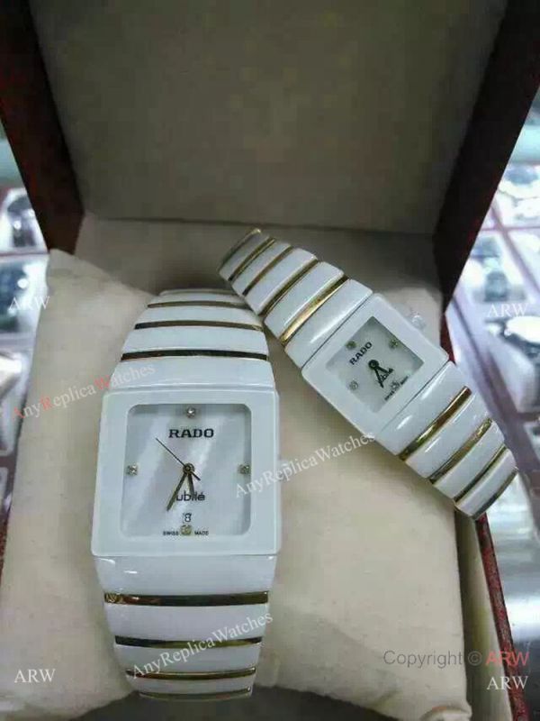 White Ceramic Watch Case / 2-Tone plated Rado Watch Ceramic Band