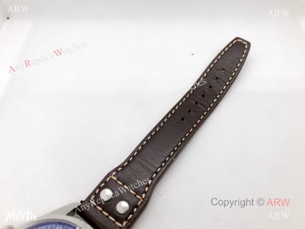 SS watch case Blue Face 7 Days Power Reserve Brown Leather Band Bracelet