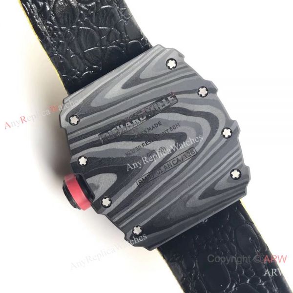 Forged Carbon watch case & Black Skeleton Dial w/ Minute markers & Richard Mille Yellow Band