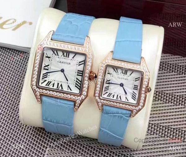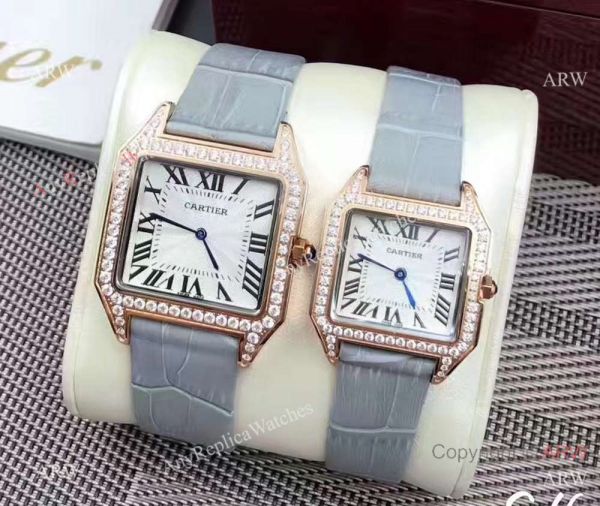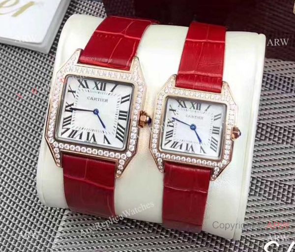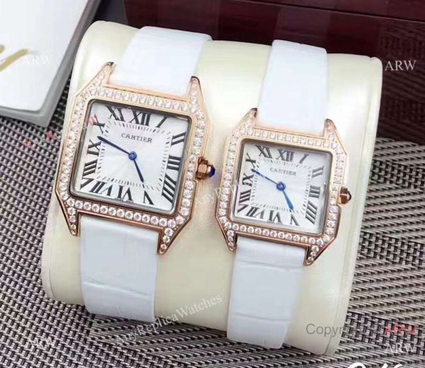 Replica Cartier Santos Diamond Bezel Lovers Watch Rose Gold