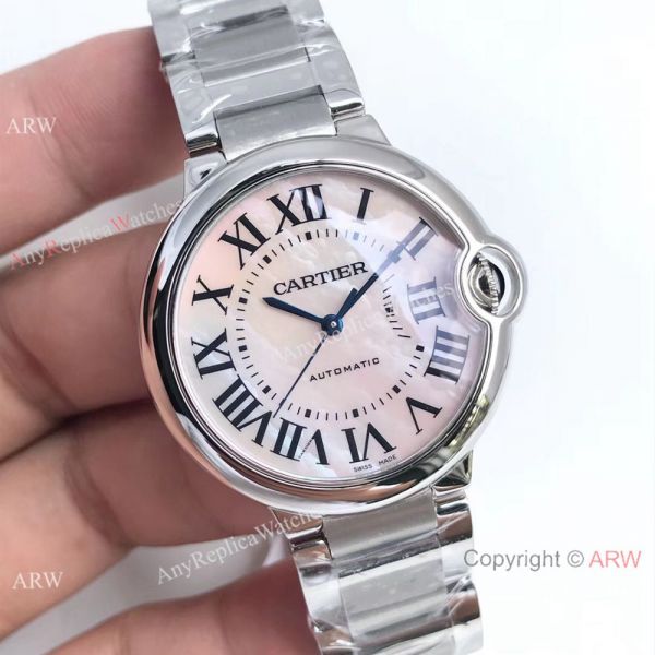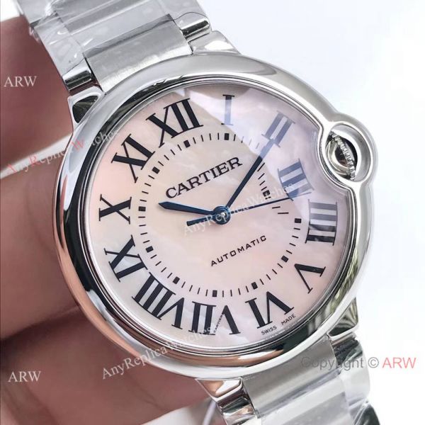 Swiss Grade Copy Cartier Ballon Bleu De Pink Mother of Pearl Dial 36mm Automatic