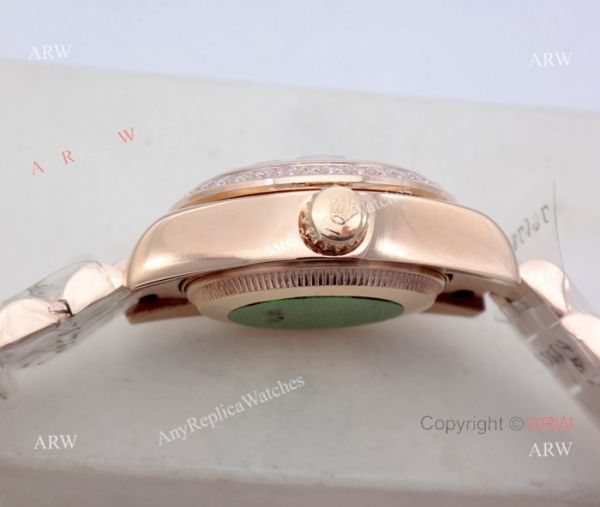 The images you see are of actual Copy Rolex Datejust watches, you will receive exactly the same Copy Rolex Datejust Gold President Black Dial Diamond Bezel Ladies Watch.