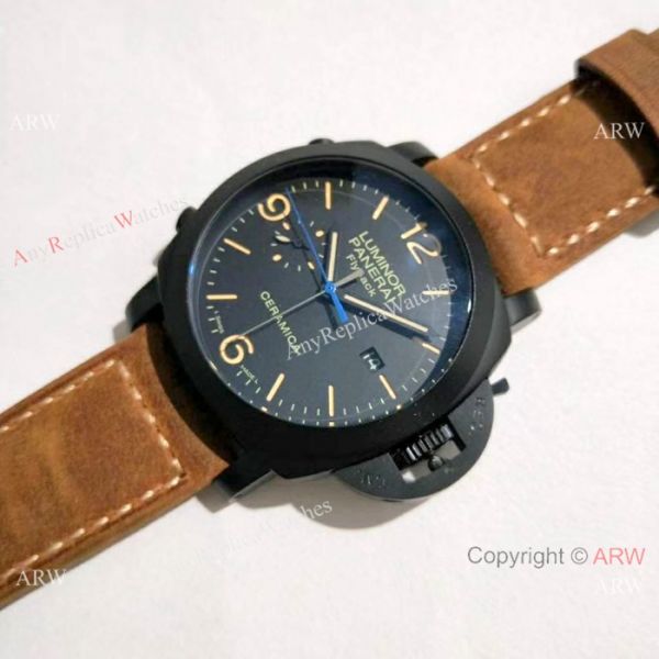 Black Steel case, Black Dial, Brown Markers, Brown leather band with PANERAI personalised buckle