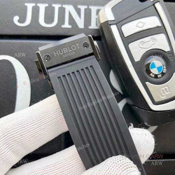 Watch band: Black Rubber Bracelet with Hublot Logo on Buckle