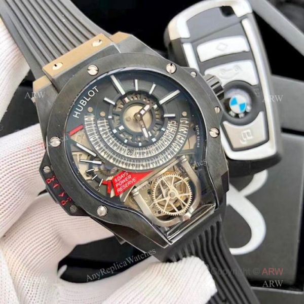 Black Steel Case Tourbillon Face for this Hublot Watch