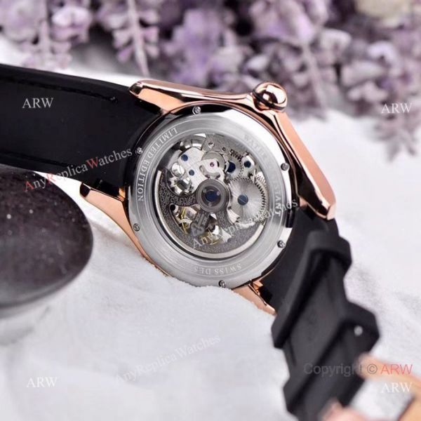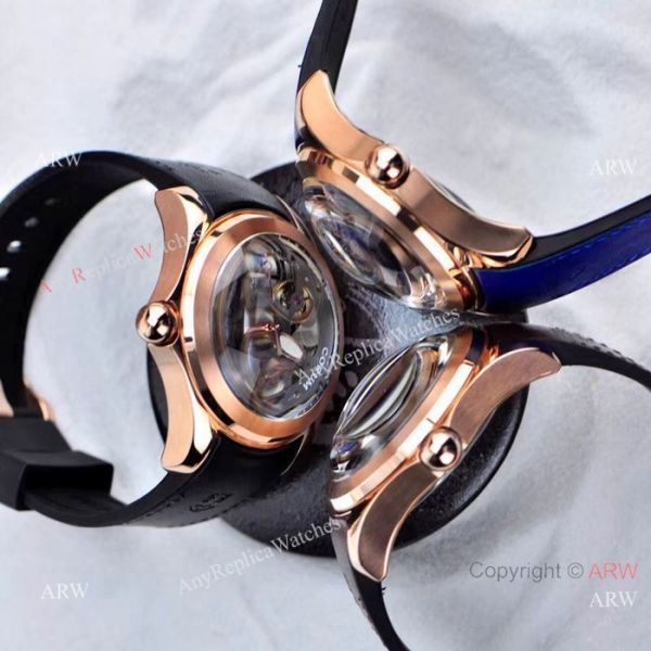 Rose Gold watch Case Skeleton face Black Gummy Band Corum Bubble Squelette Watch