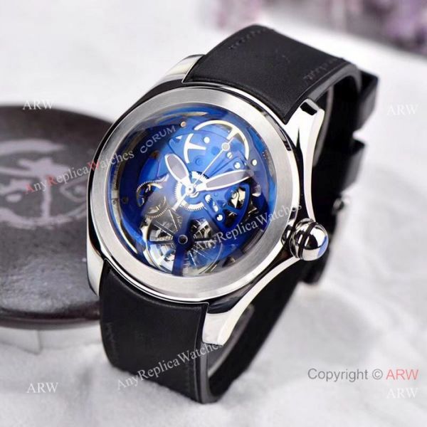316l Stainless steel watch Case Skeleton face Black Gummy Band Replica Corum Watches