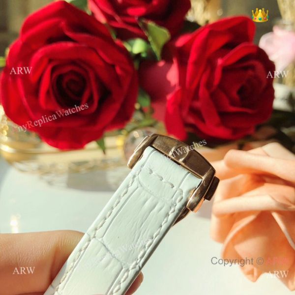 Rose Gold Diamond Case White Face Green leather Strap