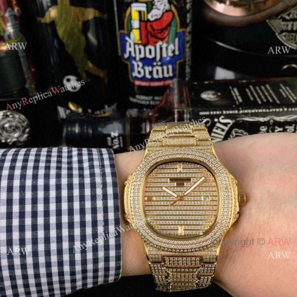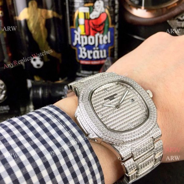 Iced Out Patek Philippe Nautilus Replica watch Quartz Movement