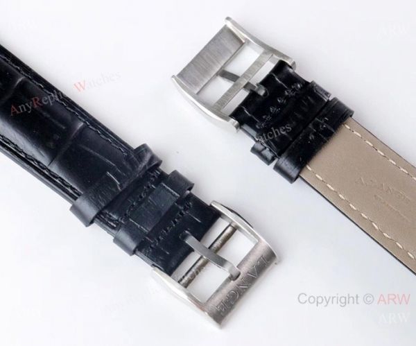 Watchband: Genuine Black Leather bracelet with Tang clasp