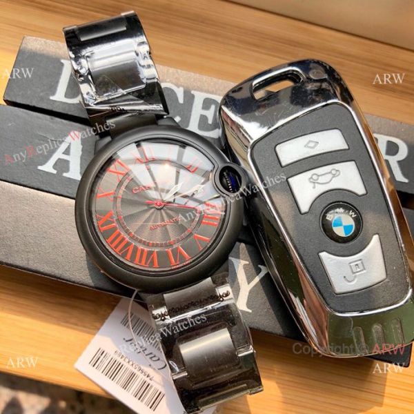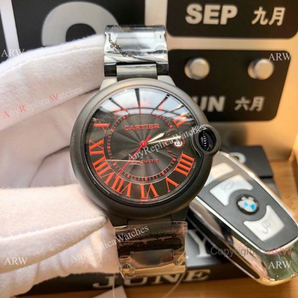 Replica Cartier Ballon Bleu Cartier 42mm PVD Black Dial Watch Citizen 8215