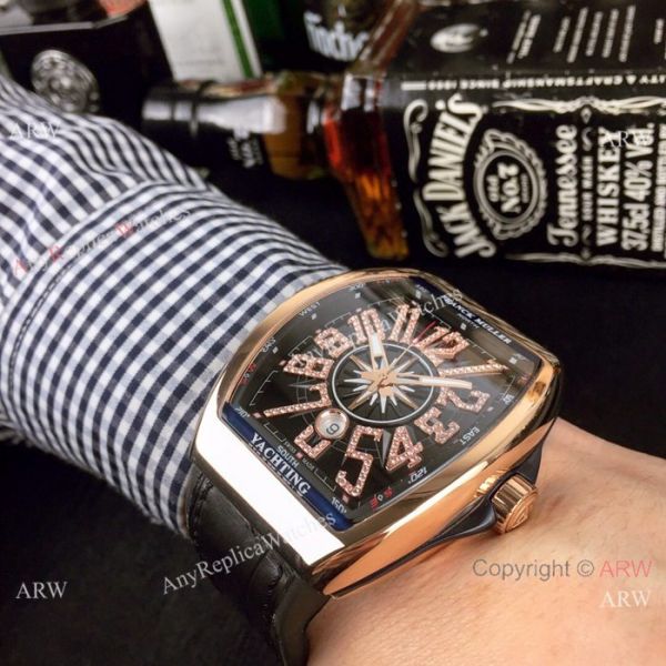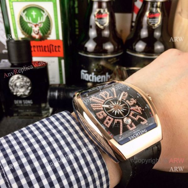 Swiss Copy Franck Muller Vanguard Yachting v45 Watch Rose Gold Black Face