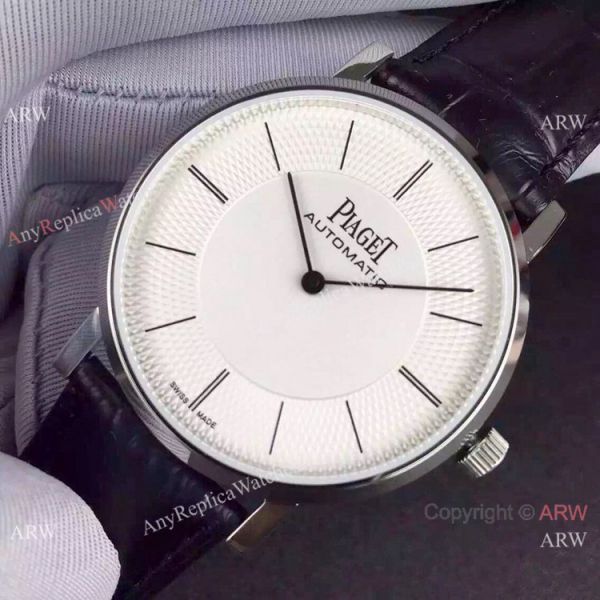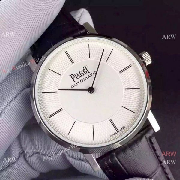 Swiss Replica Piaget Altiplano White Dial Black Leather Strap Watch Swiss 9015