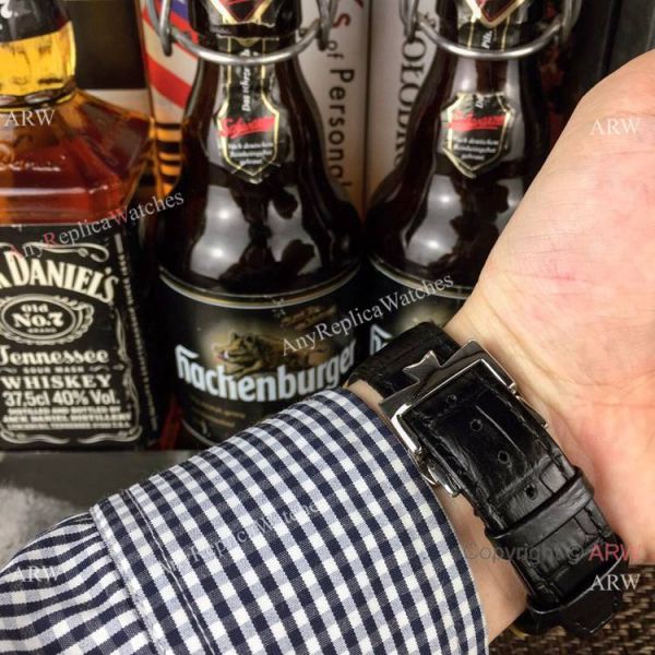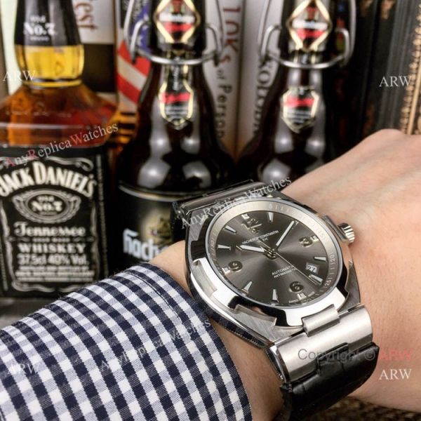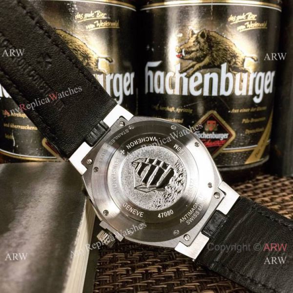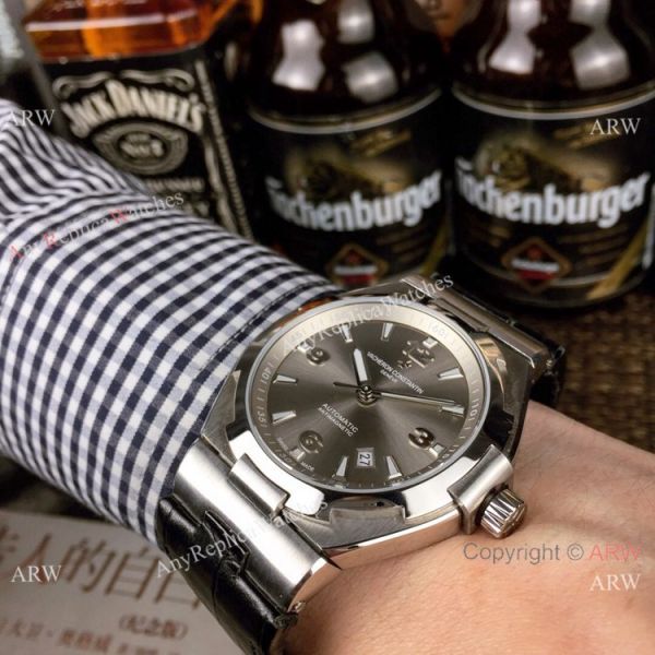 316L Stainless Steel Case Black Leather Strap and Gray Dial Fake Vacheron Constantin Watches