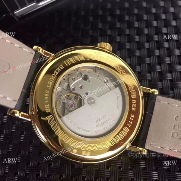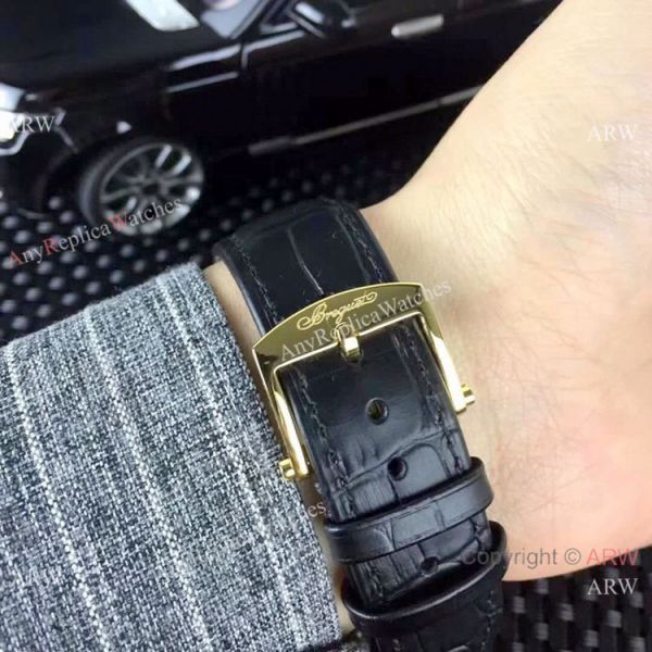 Gold Case - Silver Dial - Black Leather Strap Breguet Men's Watches