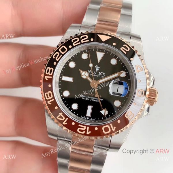Swiss Copy Rolex GMT-Master II Root-beer 2 Tone Rose Gold Watch 40mm