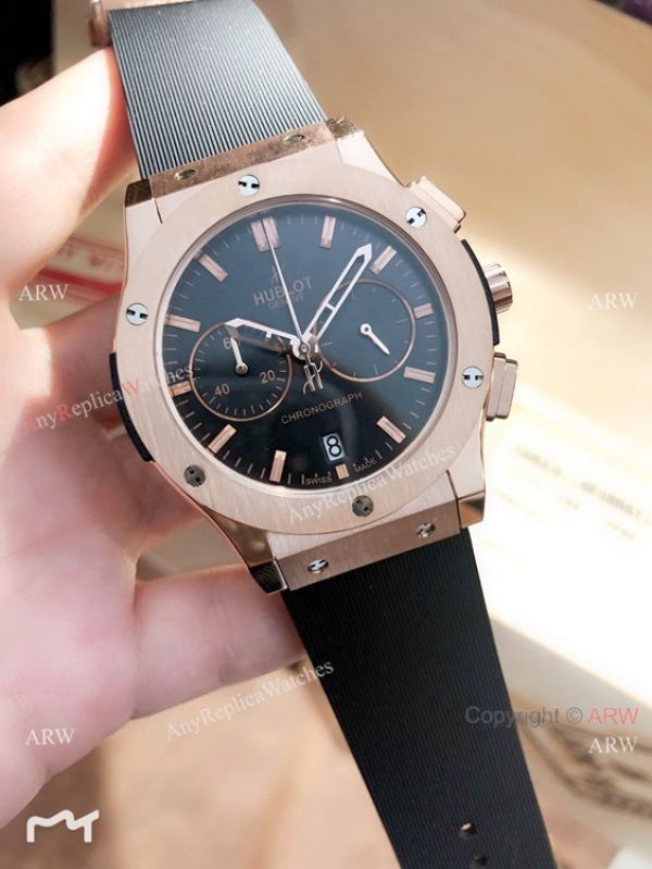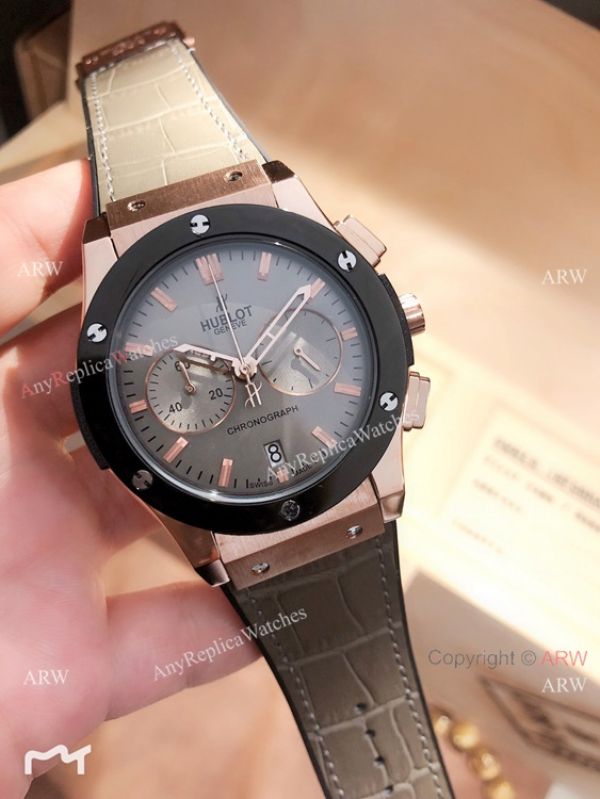Rose Gold Case Gray Gummy Strap and Gray Dial Hublot Watches Replicas