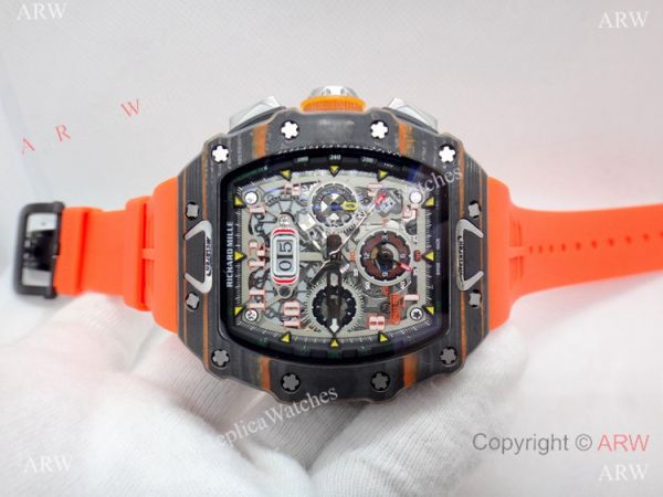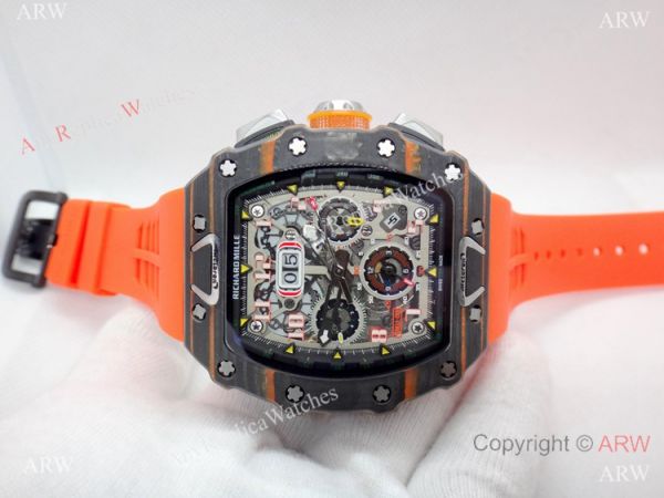 High Quality Copy Richard Mille Watch at discount price for Sale. Buy now, You will be 100% satisfied with this high quality Richard Mille Orange Band RM011-03 McLaren Men Watches.