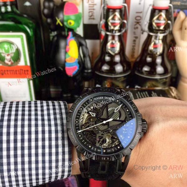 Roger Dubuis Excalibur Aventador S Skeleton Copy Watch Black DLC Case 46mm