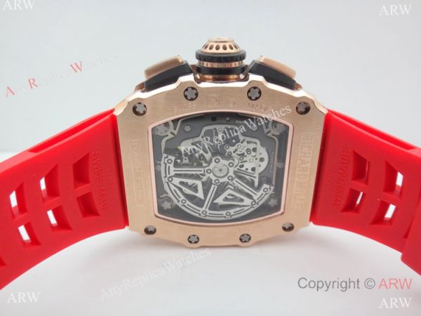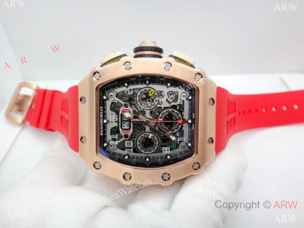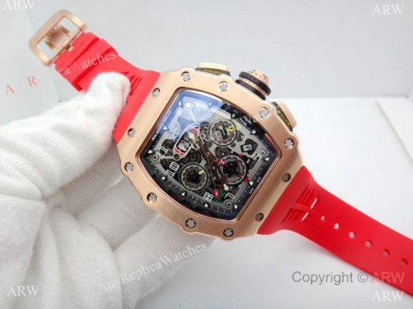 Richard Mille Flyback RM 11-03 Replica Watches Rose Gold Red Rubber Band