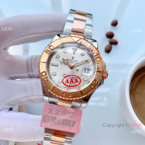 2-Tone Rose Gold case / Rose Gold bezel / Silver Dial Rolex Rose Gold Yachtmaster Watch