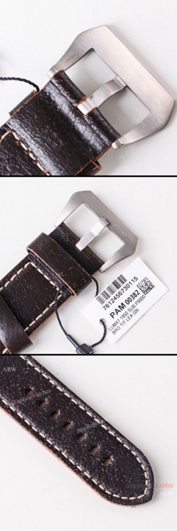 Bracelet Material: Best Quality Brown Leather Bracelet with Panerai Logo on Buckle